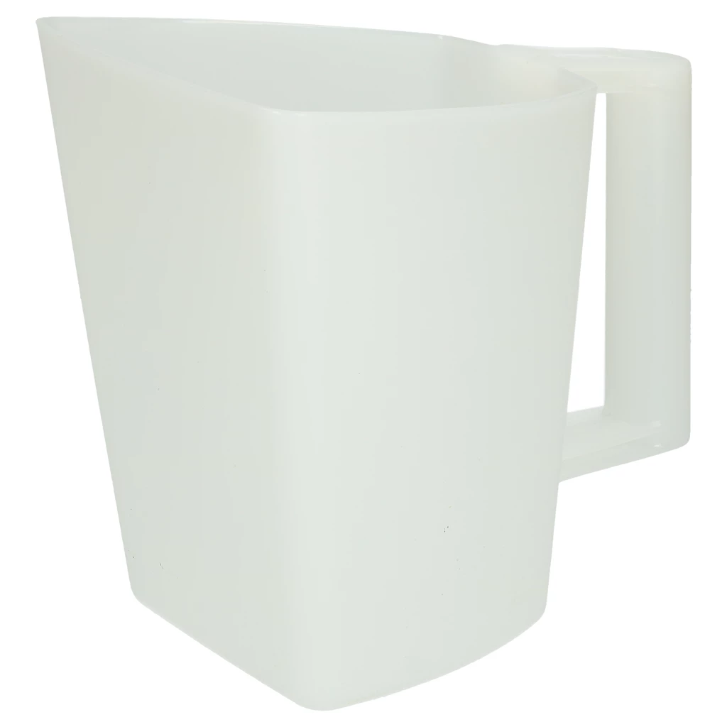 Strong plastic feed scoop in bucket model. With a scale on the inside.